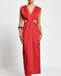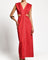 Vestido largo cruzado con escote en V profundo y detalle fruncido en la cintura que realza la silueta. Abertura frontal que aporta movimiento y un toque sofisticado. Ideal para eventos de verano o como salida elegante sobre tu swimwear.