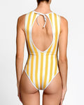 Traje de baño entero con cuello alto, diseñado para una silueta limpia y moderna con un ajuste cómodo y seguro. Su escote estructurado brinda soporte adicional y estiliza la figura, ideal para un look elegante y actual.