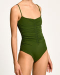 Traje de baño enterizo con fruncido en el centro que estiliza la silueta. Sus tirantes finos y ajustables brindan comodidad y soporte, mientras que el diseño clásico y elegante es perfecto para realzar tu figura en la playa o piscina. Ideal para combinar con accesorios de verano y lucir un look sofisticado y atemporal.
